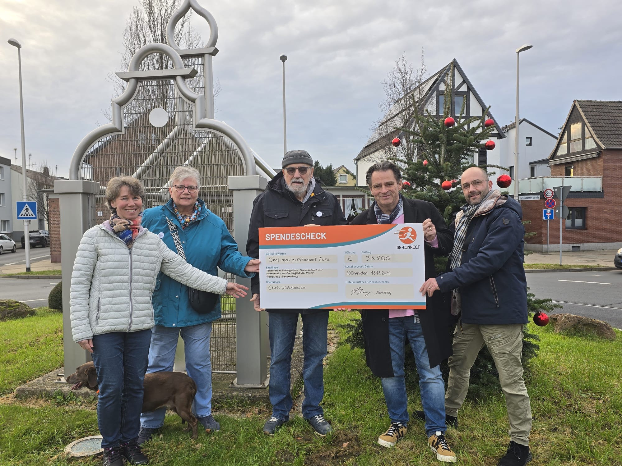 Als regionaler FTTH-Netzbetreiber fühlt sich DN-CONNECT nicht nur einer zukunftssicheren digitalen Infrastruktur verpflichtet, sondern auch dem Gemeinwohl vor Ort. Kurz vor Weihnachten überreichte das Unternehmen deshalb einen symbolischen Spendenscheck in Höhe von insgesamt 600 Euro an drei engagierte Einrichtungen in Hoven. Jeweils 200 Euro gingen an den Förderverein des AWO-Kindergartens „Gänseblümchen“, den Förderverein der Ganztagsschule Hoven und den Pfarrcaritas Seniorentreff.